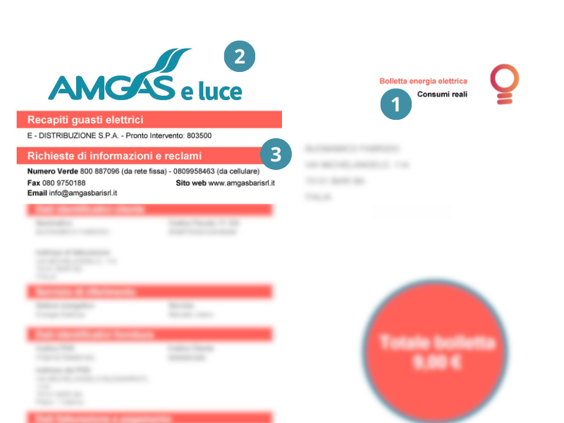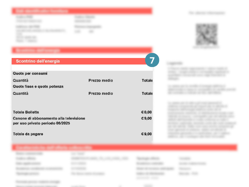 Scontrino dell’energia con dettaglio delle voci di spesa