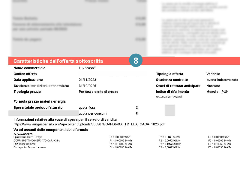 > scontrino dell’energia, in seconda pagina, con la distinta delle diverse voci di spesa (costi fissi e consumi)